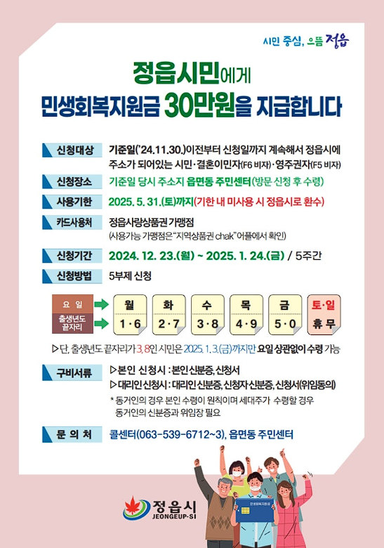 - 신청 방법: 온라인 또는 읍·면·동 행정복지센터 방문.